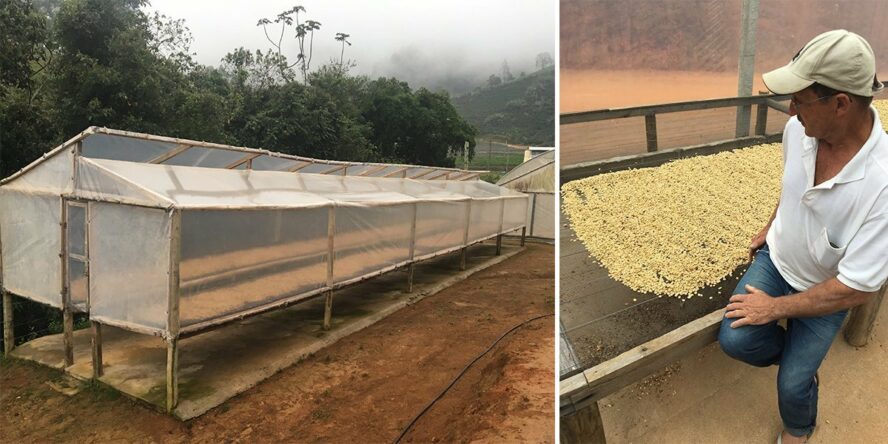Dicho lo cual, centrémonos en el café y en los perfiles que hemos encontrado donde las notas a frutas tropicales hablan por sí solas. Bien limpios y complejos, estos lotes están marcados por su proceso semi-lavado o, podríamos decir, casi lavados, algo excepcional en Brasil. En nuestra visita nos quedamos prendados con Joselino que representa un linaje de productores cuya imaginación, dedicación y respeto por la naturaleza nos dejó boquiabiertos. Joselino tiene algo más que una hectárea de café y más de 5 en el bosque. Comenta que el bosque protege su plantación de café ya que las plagas acuden a otras especies de árboles antes que a los de café. Su beneficio seco y húmedo ha sido construido por él mismo junto a su hijo con la misma precisión de un ingeniero y, además, aplican inventos propios a cualquier proceso. En nuestra opinión no hay nada más vinculado ‘Right Side’ -lado derecho del cerebro- que esta actitud de aportar creatividad cuando no existen recursos.