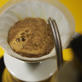 Inicia el cronómetro y vierte los primeros 50g de agua a 94ºC de manera lenta y uniforme tratando de mojar todo el café. Este primer paso es conocido como “Blooming”.