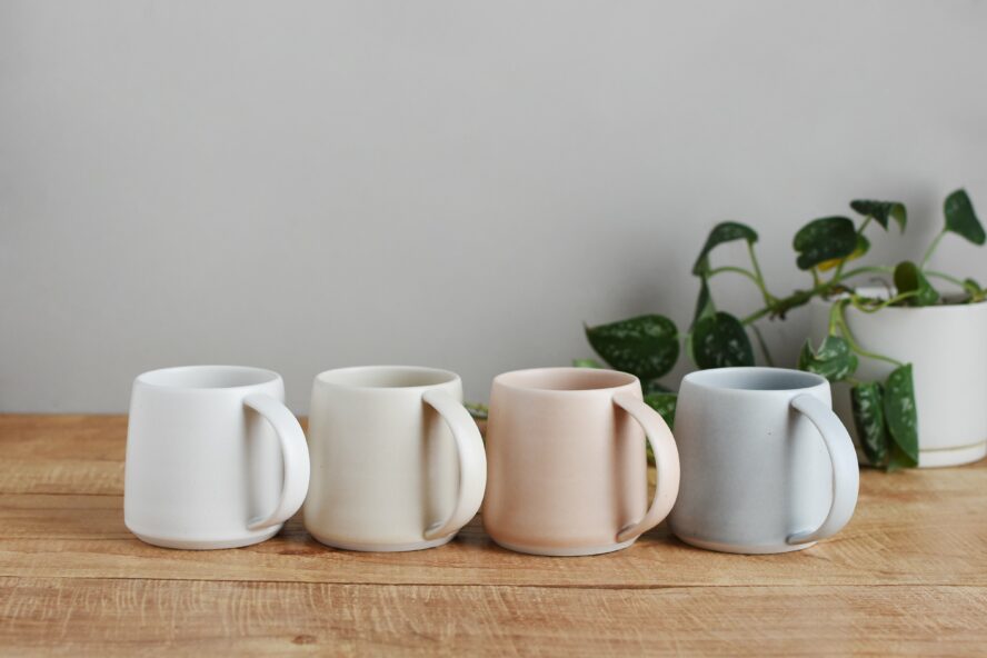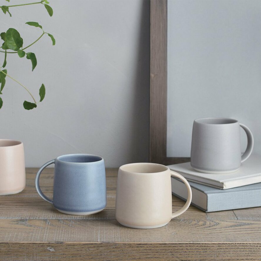 Taza de porcelana hecha a mano. Suave al tacto y las asas están diseñadas para que quepan cómodamente en las manos.