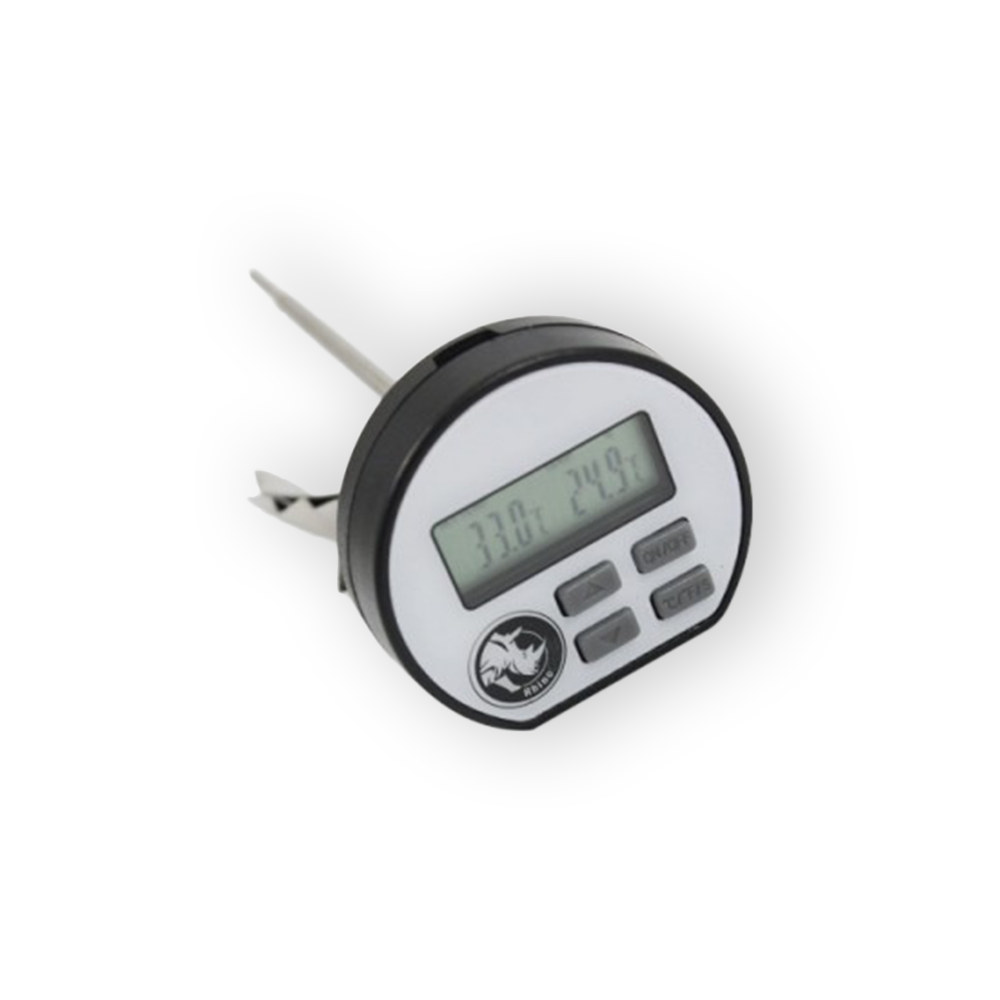 Controla la temperatura del agua de forma más rápida y consigue más precisión en la elaboración de tu taza de café con este termómetro digital. Este termómetro es muy fácil de configurar y leer y cuenta con una alarma que se activa cuando tu bebida ha llegado a la temperatura que previamente has configurado. Ideal también para leche.