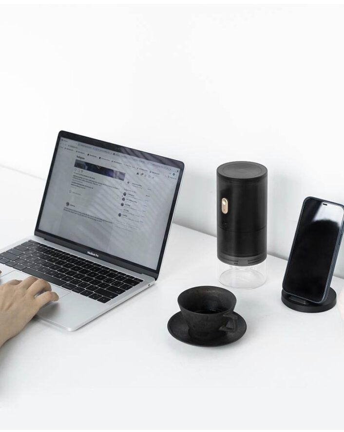 Sistema de cojinetes dobles. Batería integrada de larga duración y carga USB. Cuerpo de alta precisión y cierre de rodamientos duales.Contenedor con tapa para guardar granos de café. Técnica de giro automático para evitar atascos y proteger las muelas y el motor. Ajustes de molienda precisos para diferentes preparaciones. Motor con estructura de amortiguación para ajustar la tosquedad de la molienda con precisión y claridad
