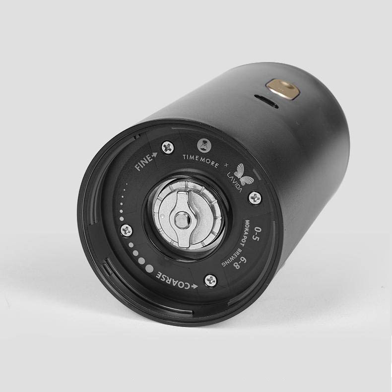 Este molino Timemore Grinder Go es un molinillo profesional eléctrico y de pequeño tamaño que permite una molienda profesional de café con alta eficiencia. Ahorra esfuerzo y tiempo en moler y es fácil de sostener en una mano. También se puede poner en la mochila y llevarlo a cualquier sitio. La batería viene integrada, sin enchufe de cordón: se carga por USB. Además, el motor cuenta con una estructura de amortiguación que ajusta la tosquedad de la molienda de manera precisa y clara.