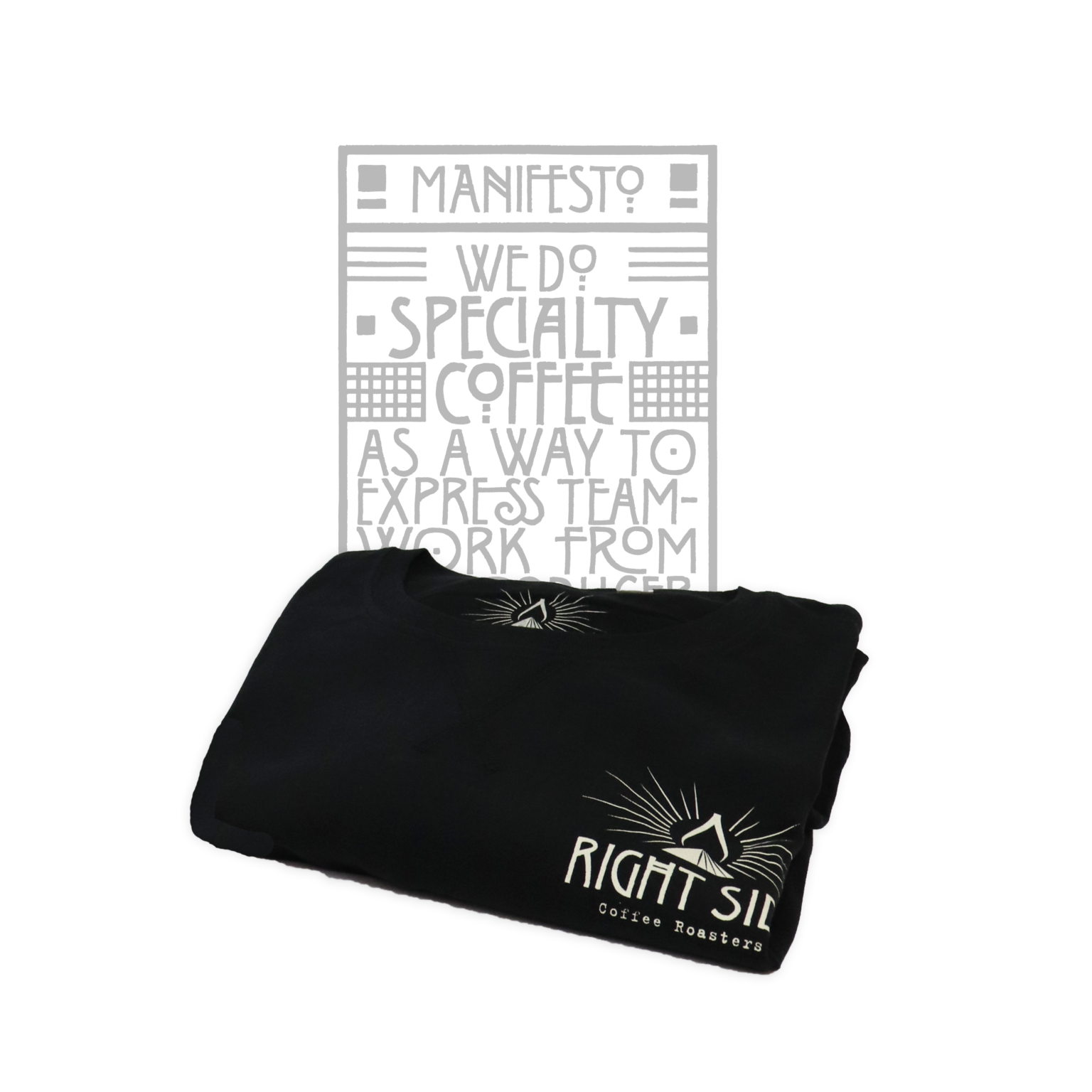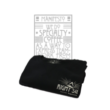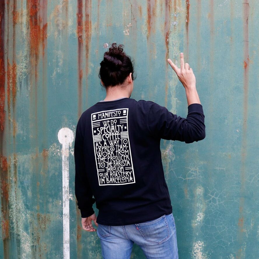 Diseñada por Iván Castro y serigrafiada a mano en 43 hilos workshop, nuestra camiseta ‘Manifesto Right Side’ representa el trabajo en equipo que se concentra en la taza de café que te bebes, desde el productor, pasando por el tueste hasta el barista.